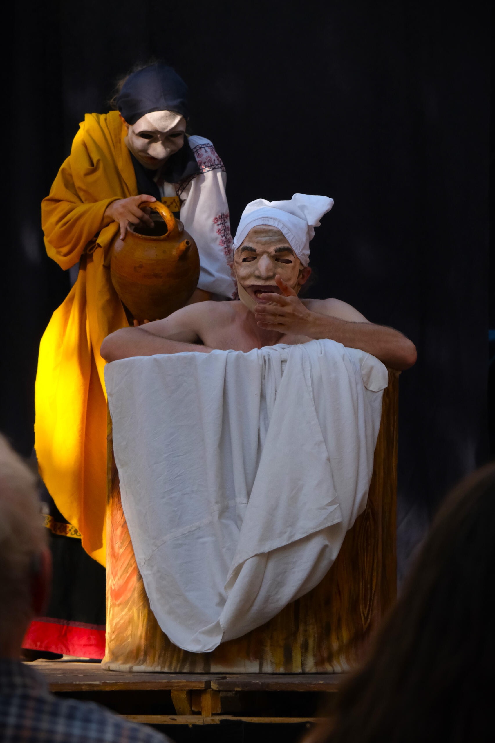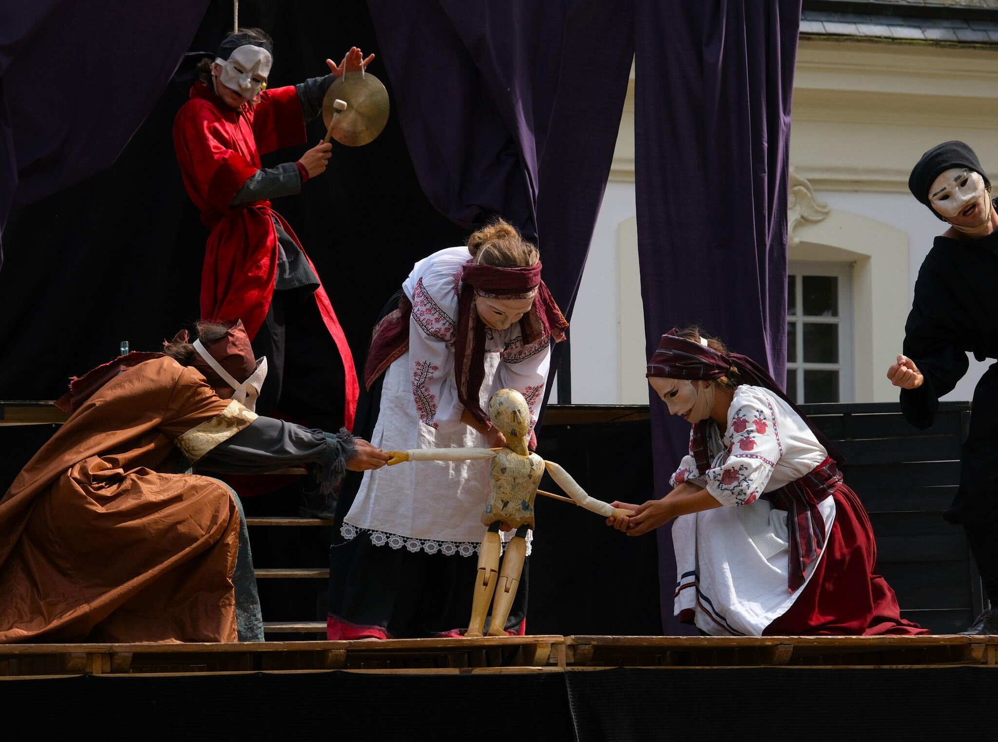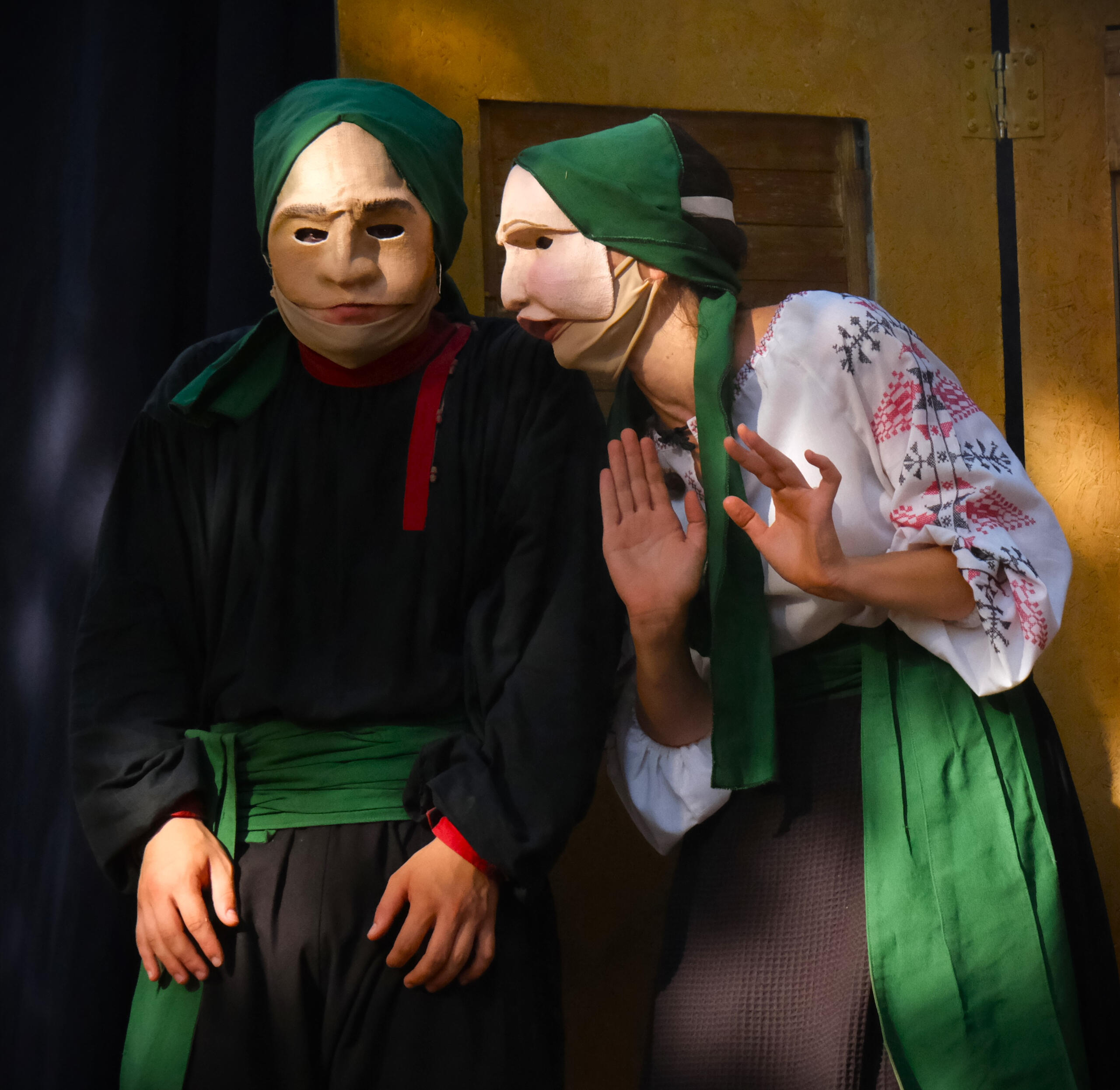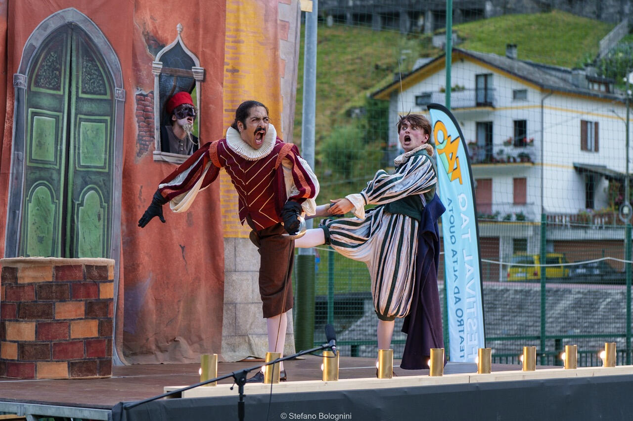 maschere, alla maniera della Commedia dell'Arte.Combattimenti, pantomime, canti e balli originari d'Europa e d'Oriente arricchiscono quest'opera di teatro