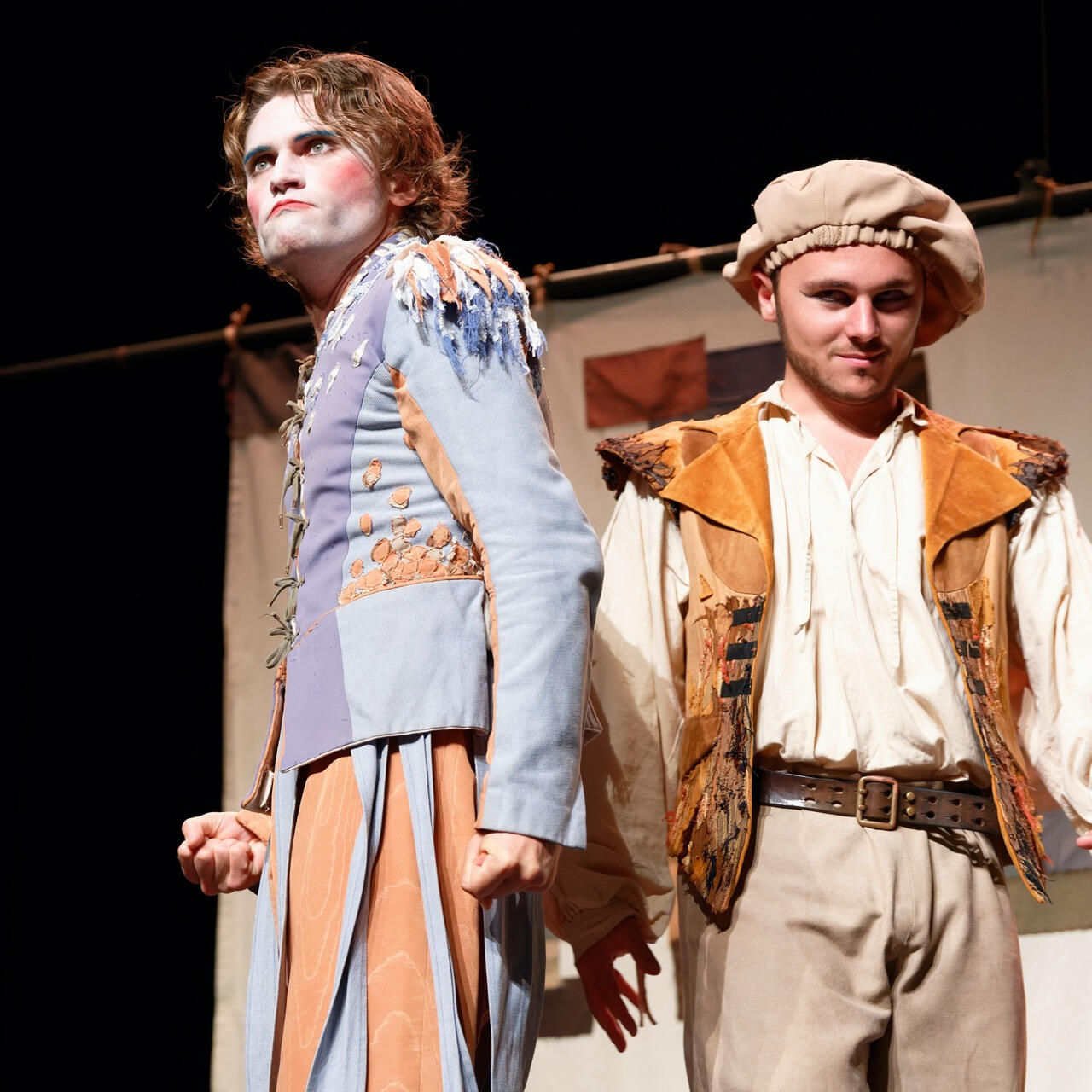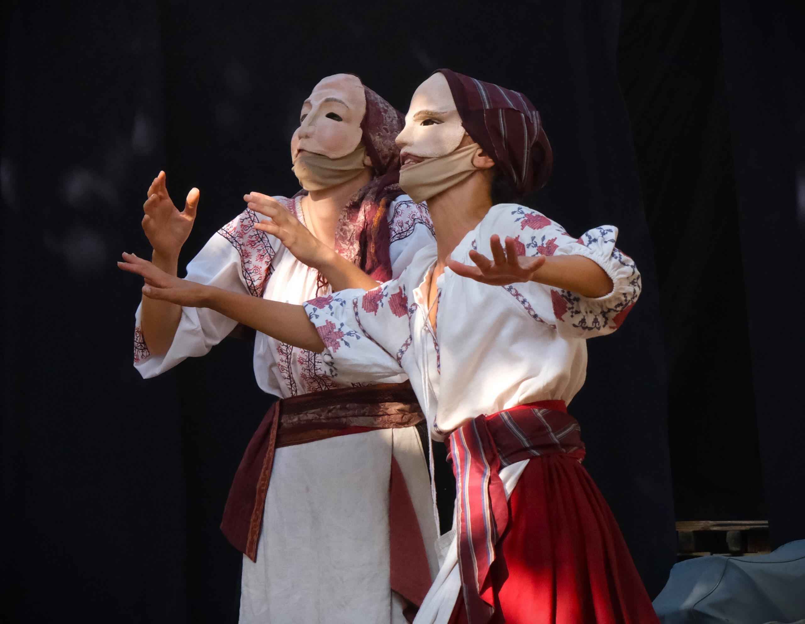 Dans nos spectacles on retrouve des chants, de la pantomime, des danses, des combats, des acrobaties, et tant d’autres formes portées par des personnages hauts en couleurs, masqués ou non, dans le seul but d’émouvoir notre public.
