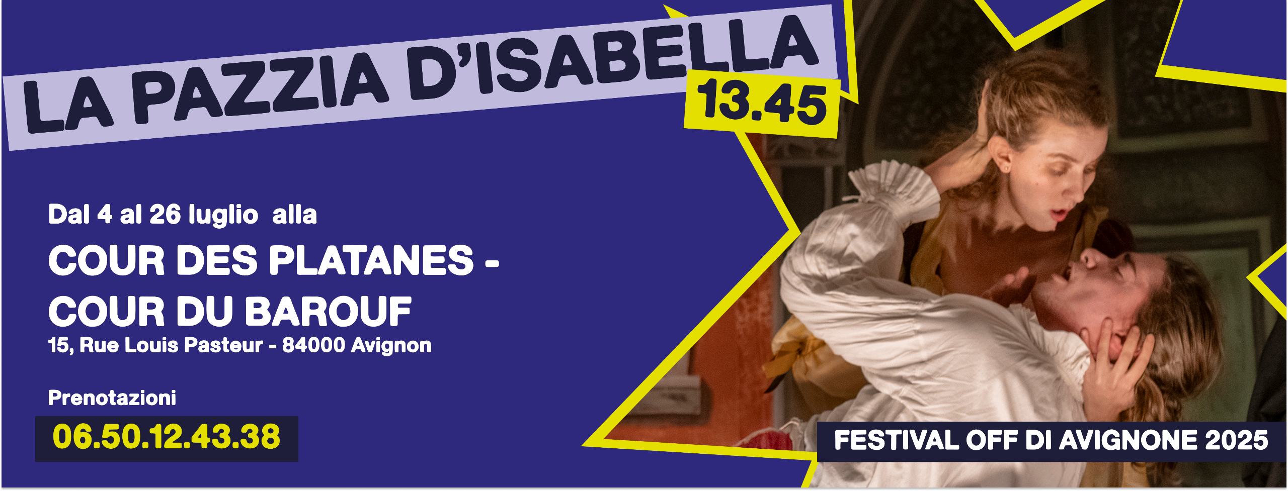 A travers subterfuges, lazzis et scènes à rebondissements, les habitants du Campiello San Pantalon réussiront-ils à sauver Isabelle de la folie ?La Folie d’Isabelle est une œuvre majeure de la Commedia Dell'Arte qui mêle Orient et Occident, tragédie et comédie, raison et folie dans un tourbillon d’événements et de coups de théâtre dignes de la plus grande tradition de la Commedia Dell’Arte.