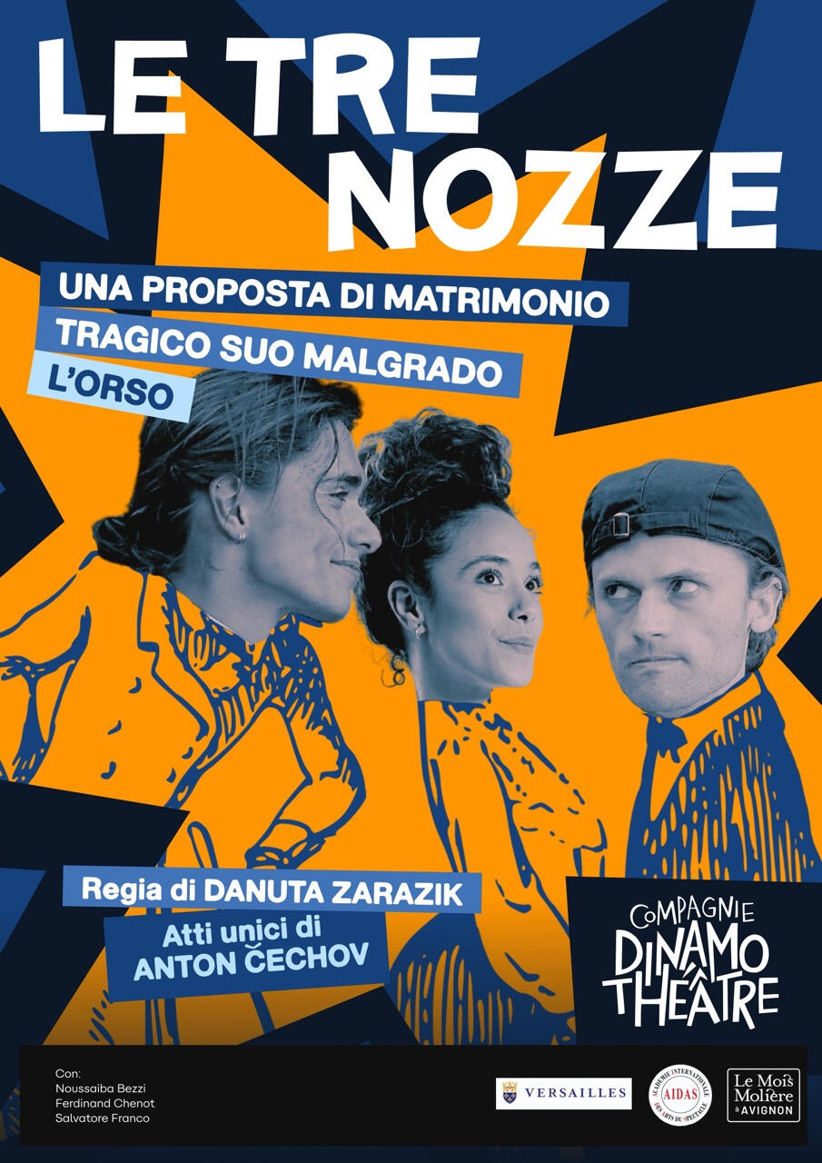 Associazione legge 1901, la Compagnie Dinamo Théâtre è fondata nel 2023 da sette studenti dell’Académie Internationale Des Arts du Spectacles della città di Versailles.I nostri spettacoli sono un misto di canto, mimo, danza, scherma e acrobazia che si sviluppa attorno a personaggi mascherati e smascherati con l'unico obiettivo di raggiungere il pubblico. Dal teatro antico di Sofocle e Eschilo alla modernità di Bertolt Brecht, passando per le maschere della Commedia dell'Arte e il teatro classico di Molière, i cinque spettacoli del nostro repertorio sono molto diversi tra loro. Tragedia, commedia o tragi-commedia, nessun registro ci sfugge.Pronti a partire!