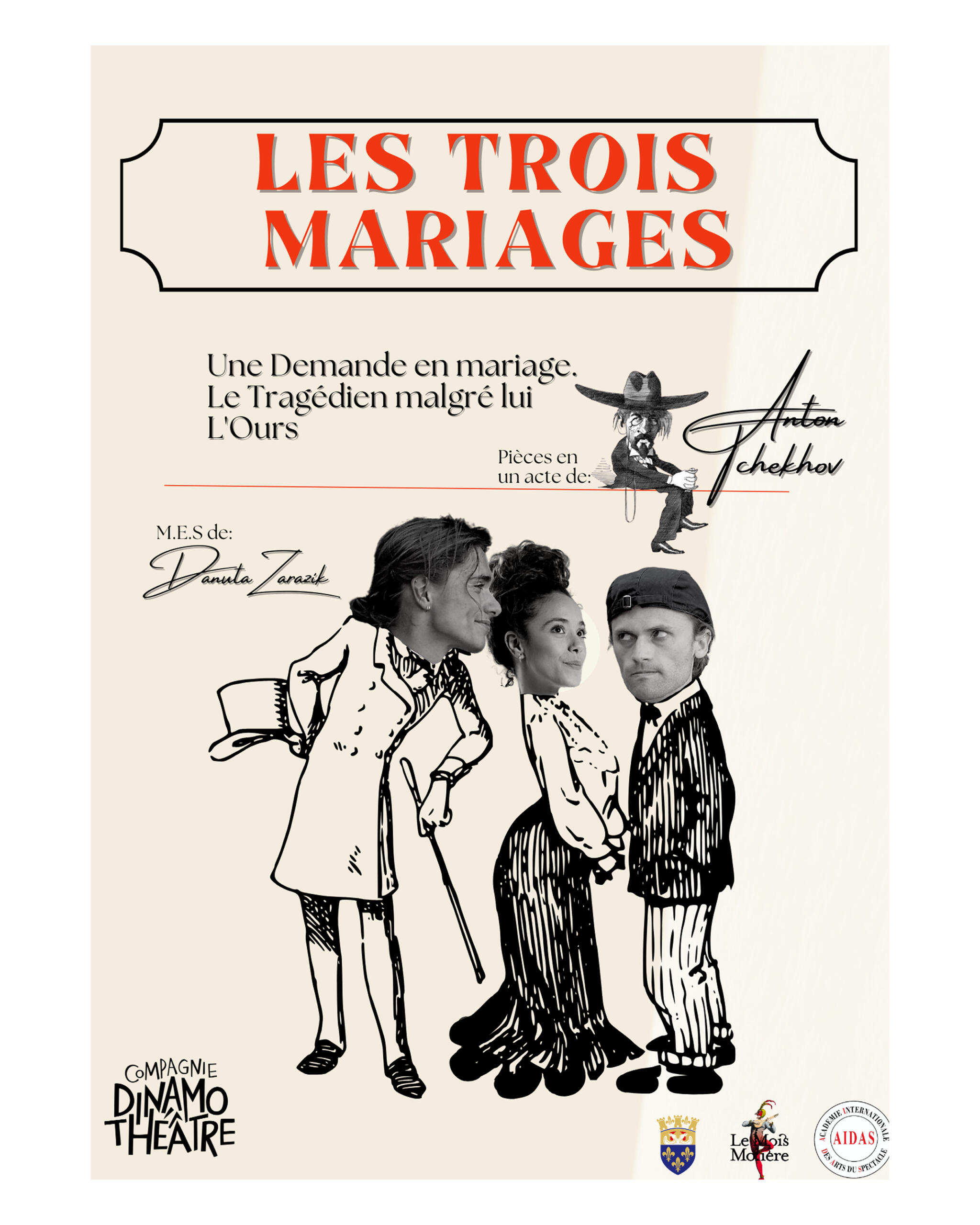 - "Le Tragédien malgré lui"Trois petits chefs-d'œuvre où se mêlent quiproquos et situations cocasses, dévoilant avec humour les risques d'une demande en mariage, de l'acceptation et de la vie conjugale. Ces personnages hauts en couleur, excentriques et profondément émouvants ne manqueront pas de vous marquer. Un spectacle où rires et émotions sont au rendez-vous!